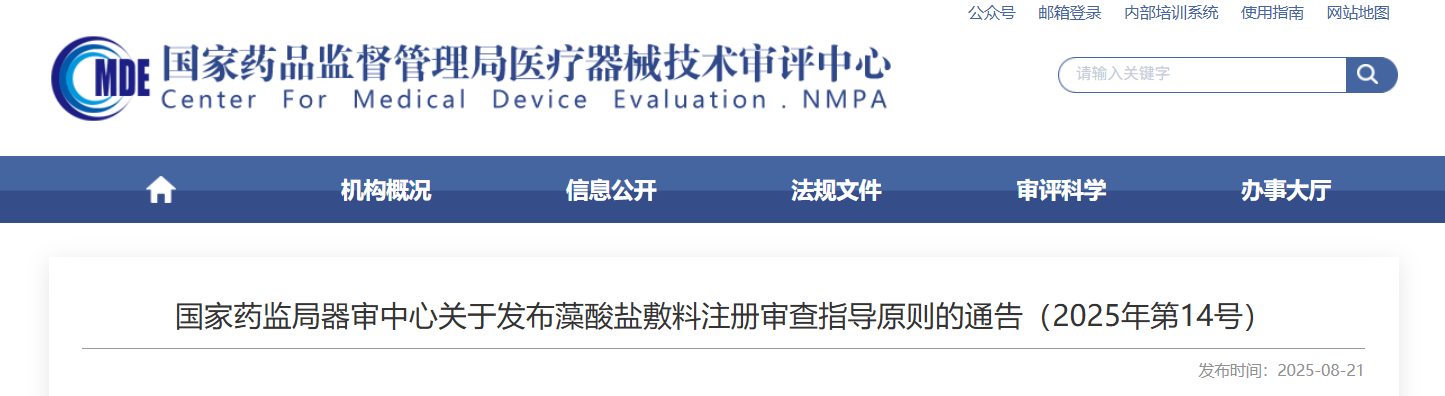 为进一步规范藻酸盐敷料产品的管理,国家药监局器审中心组织制定了《藻酸盐敷料注册审查指导原则》,现予发布。